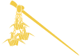 金属製のセンスや丸い形をしていて、家紋がほどこされています。舞妓が前差しとして使います。